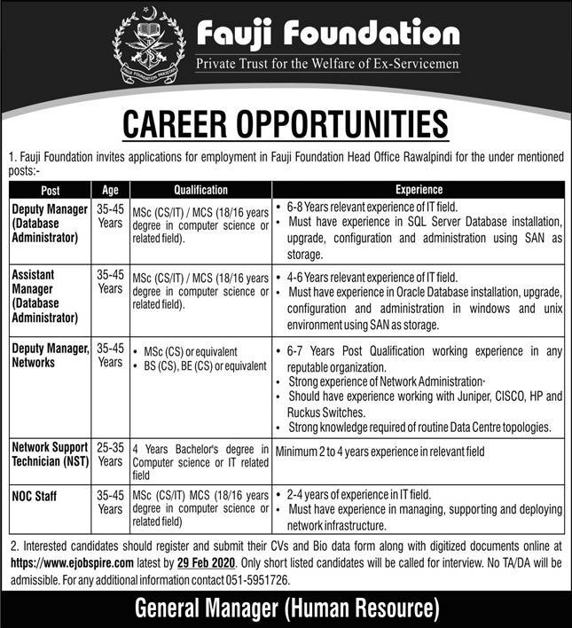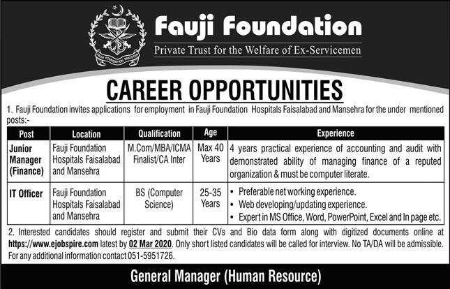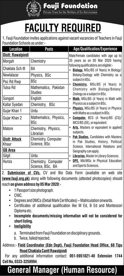 | Fauji Foundation Latest Jobs 2020 - 23/02/2020 |